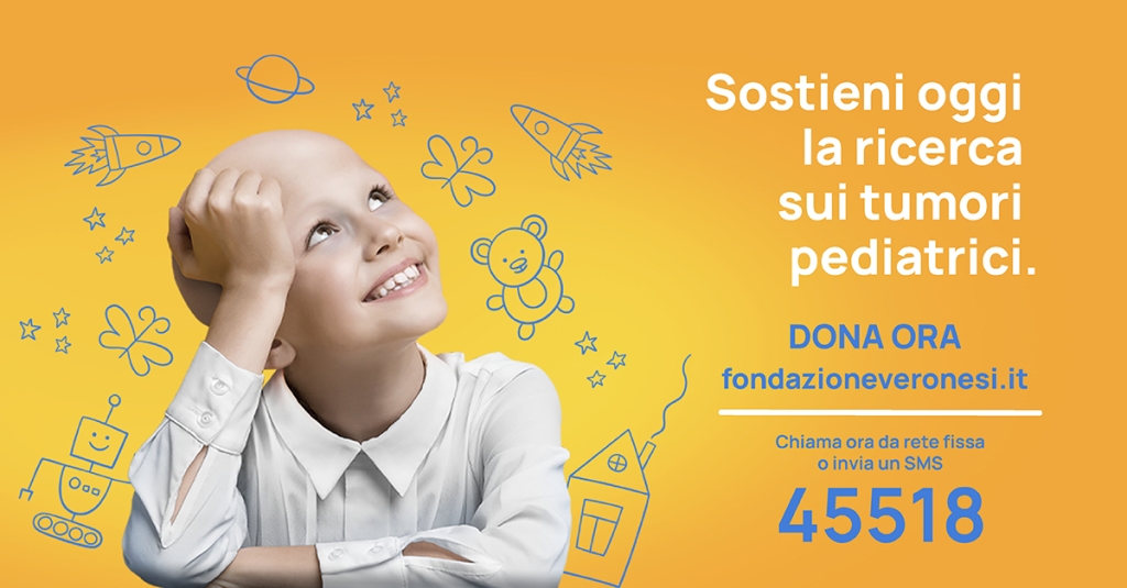 Nel mese di febbraio, in concomitanza con la Giornata Mondiale contro il Cancro Infantile, Fondazione Veronesi avvia una campagna di raccolta fondi tramite numerazione solidale per sostenere la ricerca scientifica sull’oncologia pediatrica, anche grazie al supporto informativo di Rai per la Sostenibilità - ESG.