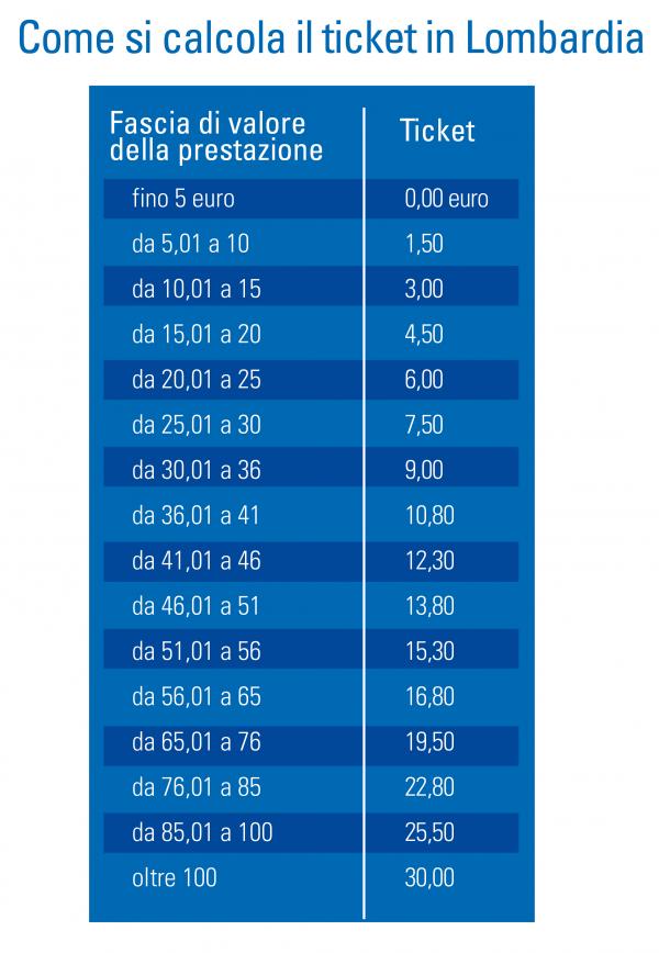 E’ in vigore in Lombardia il nuovo provvedimento regionale di rimodulazione del ticket. Il ticket non sarà più di 10 euro fissi per ogni tipo di prestazione ma proporzionale al valore della prestazione e che va da 0 ai 30 euro. Resta invariato il ticket sulle prestazioni di Pronto Soccorso, con l’applicazione del ticket da 25 euro sui codici bianchi e la conferma dell’esenzione per gli altri codici.