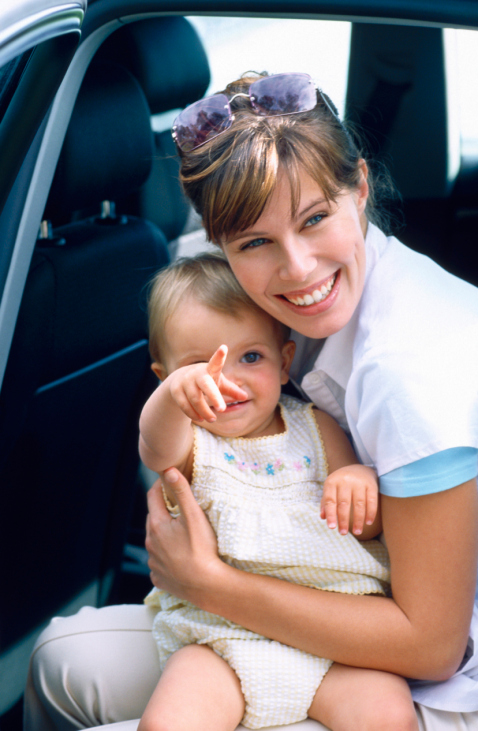 Auto. Uno spostamento in macchina, anche breve, non è mai sicuro. i bambini dovrebbero essere trasportati secondo la loro età, in appositi seggiolini o protetti da cinture di sicurezza. Per il bambino molto piccolo il lungo viaggio in macchina può risultare faticoso, ma esistono alcuni accorgimenti che possono essere d'aiuto, come non partire nelle ore più calde della giornata, evitare i giorni in cui il rischio di code è particolarmente elevato, tenere impianto di climatizzazione ad una temperatura non troppo diversa da quella esterna (non dovrebbero esserci più di cinque gradi di differenza tra esterno ed interno) per non far soffrire troppo il caldo al bambino e una ventina di minuti circa prima dell’arrivo cominciare a diminuire l'aria fresca in modo che il piccolo non sia sottoposto ad uno sbalzo termico, utilizzare tendine parasole per non esporlo direttamente ai raggi solari, fare soste ogni ora circa, per distrarlo, non fumare nell'abitacolo, portare con sè una borsa dedicata espressamente al "materiale da viaggio": un cambio completo di vestitini, pannolini, biberon con camomilla per tranquillizzarlo e ovviamente il latte necessario ai pasti (se non viene allattato al seno). Nei viaggi particolarmente lunghi (oltre le 4-5 ore) risultano molto utili i piccoli thermos per mantenere fresco il latte e gli scalda biberon da auto che sfruttano la presa dell'accendisigari.