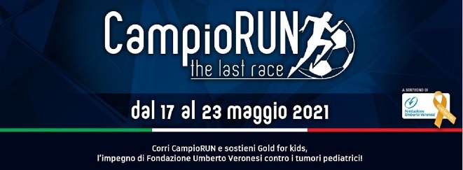 Ad aprire l’anno delle iniziative sportive di cui Fondazione Umberto Veronesi è charity partner è la CampioRUN!, in programma da lunedì 17 a domenica 23 maggio. La marcia non competitiva coinvolgerà tutte le tifoserie delle squadre di calcio di serie A, con un fine benefico: sostenere la ricerca sui tumori pediatrici finanziata da Fondazione Umberto Veronesi. Per ogni iscrizione all’evento, una quota sarà devoluta al progetto Gold for Kids. Il sostegno alla ricerca potrà essere dato anche acquistando la borraccia di Fondazione durante l'iscrizione all’evento o effettuando una donazione sulla pagina del progetto Gold for Kids.