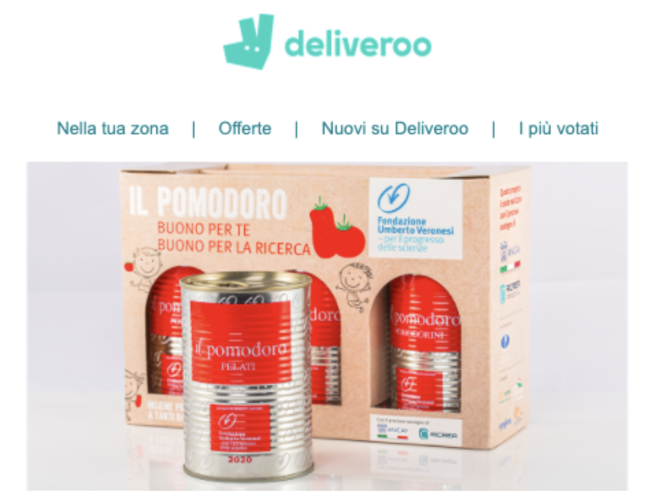 L'iniziativa «Il Pomodoro. Buono per te, buono per la ricerca» non si ferma. Se lo scorso week-end non siete riusciti ad acquistare le tre lattine di pomodoro (pelati, polpa, pomodorino) per sostenere la ricerca nel campo dell'oncologia pediatrica, potete ancora farlo grazie a Deliveroo, azienda leader nelle consegne di cibo a domicilio.