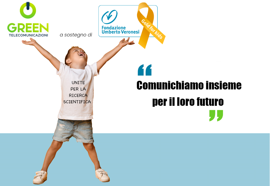 A partire dal 1 aprile, Green Telecomunicazioni ha lanciato un’offerta rivolta a tutti i suoi consumatori destinando parte del ricavato dalla vendita delle nuove SIM telefoniche al progetto Gold for Kids di Fondazione Umberto Veronesi dedicato ai tumori pediatrici.