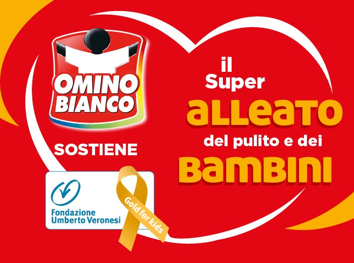 Omino Bianco, da oltre 60 anni l'alleato delle famiglie italiane per la cura completa del bucato, sostiene Gold for Kids, il progetto con cui Fondazione Umberto Veronesi sostiene la ricerca sui tumori dell’infanzia e dell’adolescenza.