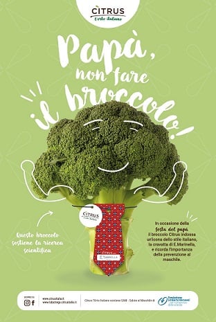 In occasione della Festa del Papà (19 marzo), il broccolo Citrus si veste ad hoc con una mini cravatta (realizzata dalla storica azienda napoletana E. Marinella) per farsi portavoce di due messaggi: ribadire l'importanza del sostegno alla ricerca scientifica e ricordare che la prevenzione può partire anche dai gesti quotidiani più semplici, come il mettersi a tavola e scegliere i cibi buoni e salutari.