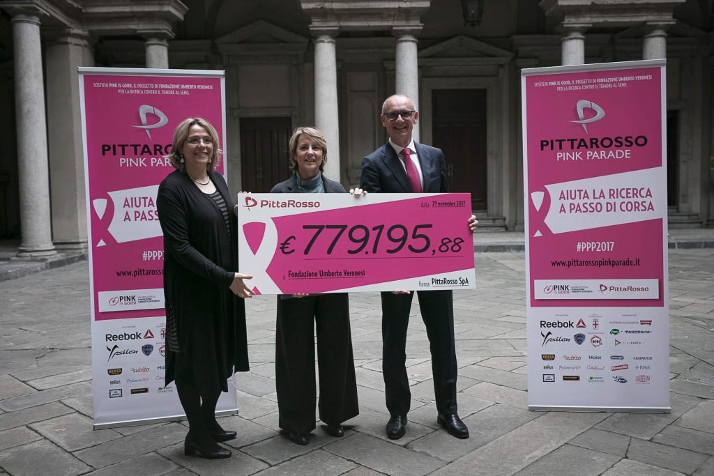 L’edizione 2017 della PittaRosso Pink Parade ha prodotto risultati eccellenti, al di là delle più rosee previsioni e ha chiuso simbolicamente il mese di ottobre, mese che in tutto il mondo è dedicato alla lotta al tumore al seno. Grazie alla manifestazione sono stati raccolti 779.195,88 euro a sostegno del progetto Pink is Good, per la ricerca scientifica contro i tumori femminili.