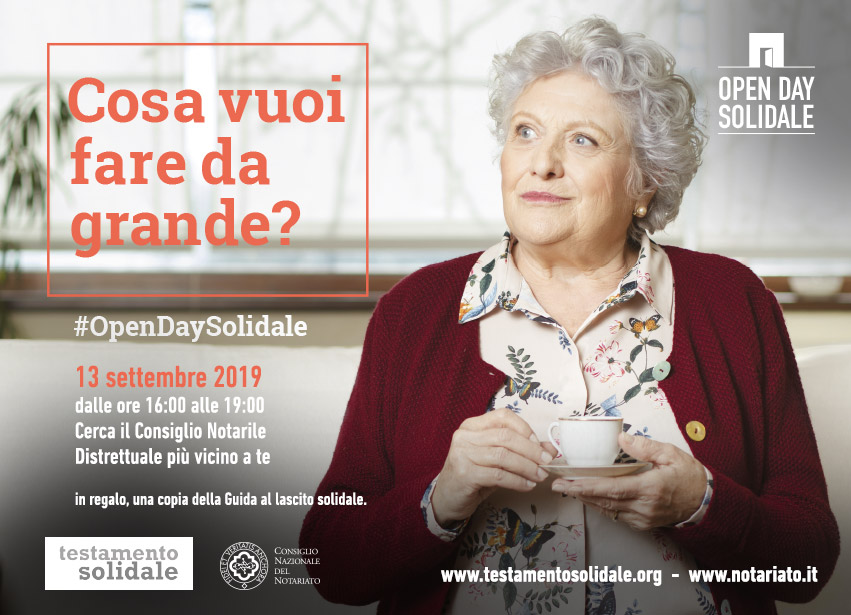 Durante l'Open Day il 13 settembre dalle ore 16 alle 19 presso le sedi dei Consigli Notarili aderenti si potranno avere informazioni e consulenza gratuita sul lascito solidale, confrontandosi ad esempio su come si fa un testamento solidale, come tutelare la famiglia e far in modo che le proprie volontà vengano eseguite dopo la morte, cosa si può donare in beneficenza.