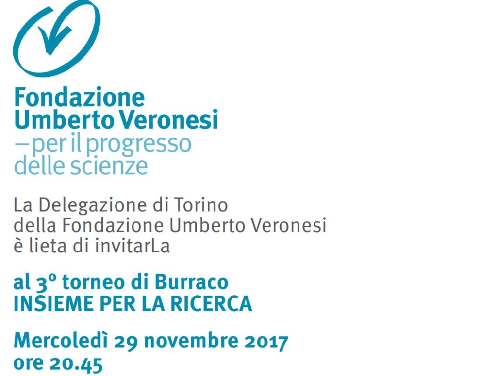 La delegazione di Torino della Fondazione Umberto Veronesi organizza per mercoledì 29 novembre un torneo di Burraco che servirà per sostenere l'attività di "Gold for Kids", il progetto di fondazione per la lotta ai tumori pediatrici e dell'età adolescenziale.
