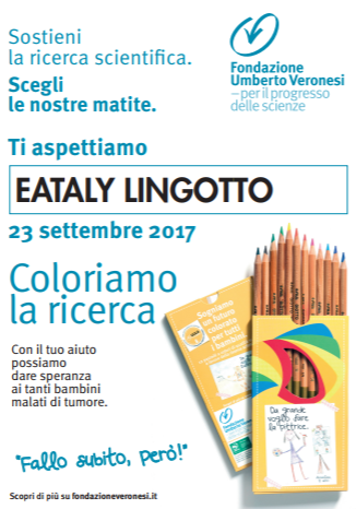La delegazione di Torino della Fondazione Umberto Veronesi ha organizzato un banchetto con i volontari per sostenere Gold for Kids, il progetto dedicato all’oncologia pediatrica. L’appuntamento è fissato per sabato 23 settembre davanti all’ingresso di «Eataly» (via Nizza 230/14).