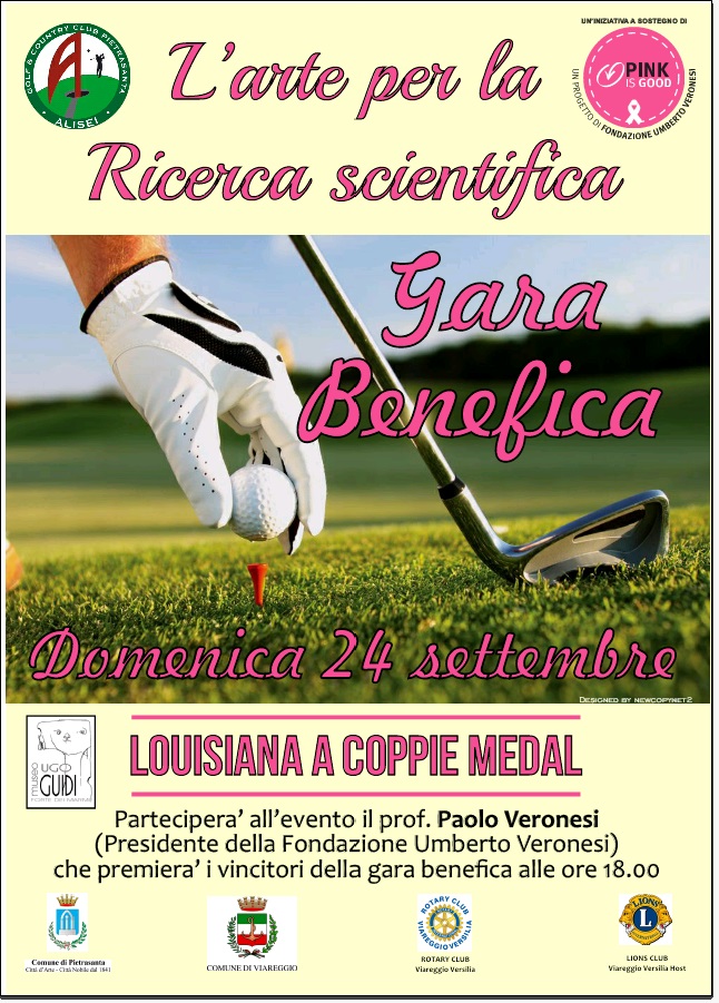 Domenica 24 settembre a Pietrasanta (LU) si terrà una gara benefica di golf. L'evento è organizzato dalla Delegazione di Viareggio della Fondazione Umberto Veronesi, guidata da Marina Gridelli, in collaborazione con il Museo Ugo Guidi e il Golf Club Alisei.