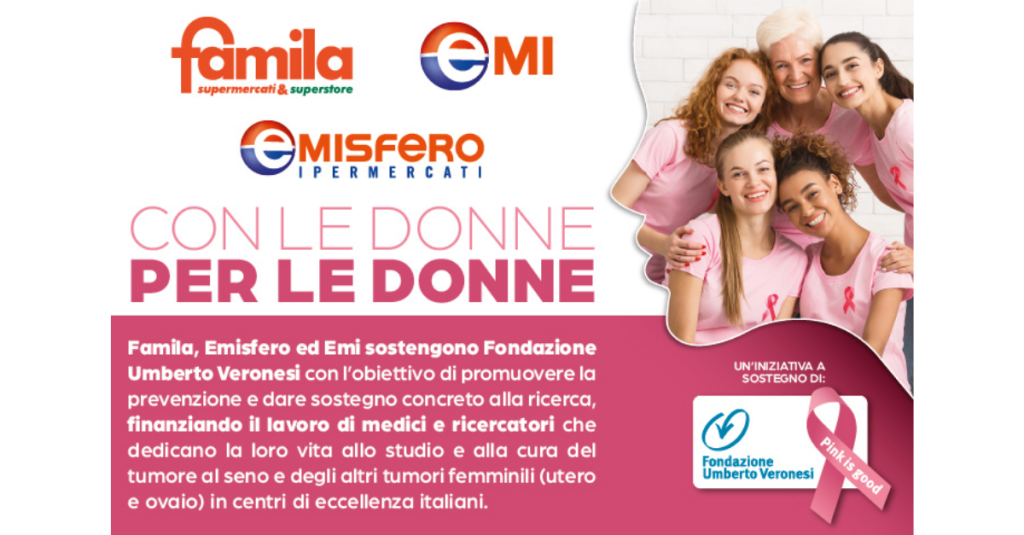 Per tutto il mese di ottobre, è possibile sostenere la ricerca sui tumori femminili promossa da Fondazione, con una donazione alle casse (donazione minima 1 euro) dei supermercati Famila ed Emi e negli ipermercati Emisfero.