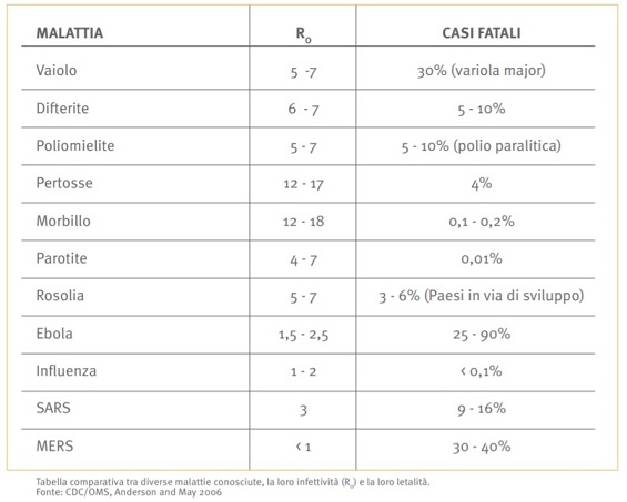 Esiste anche un valore chiave per capire questo con concetto, chiamato R0: in epidemiologia è un valore numerico che rappresenta il numero medio di persone che vengono contagiate da ciascuna persona infetta. Se il suo valore è 2, significa che ogni malato contagia due sani. Più R0 è elevato, più l'agente patogeno si diffonde velocemente, mentre se questo valore è inferiore a 1 la malattia tende a estinguersi da sola nella popolazione. R0 non dipende solo dalle caratteristiche dell'agente infettivo: densità e mobilità della popolazione, condizioni igieniche e climatiche e numero di persone immuni o vaccinate possono limitare o favorire la diffusione di un virus.