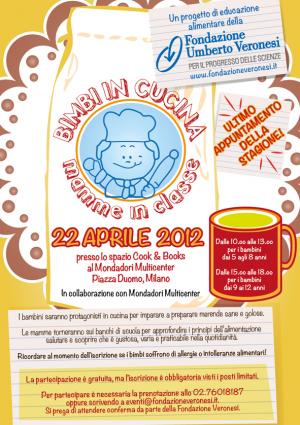 Ultimo appuntamento della stagione con "Bimbi in cucina, mamme in classe", l'evento destinato a mamme e bambini che vogliono imparare i trucchi della sana alimentazione, con gli esperti della Fondazione Veronesi.