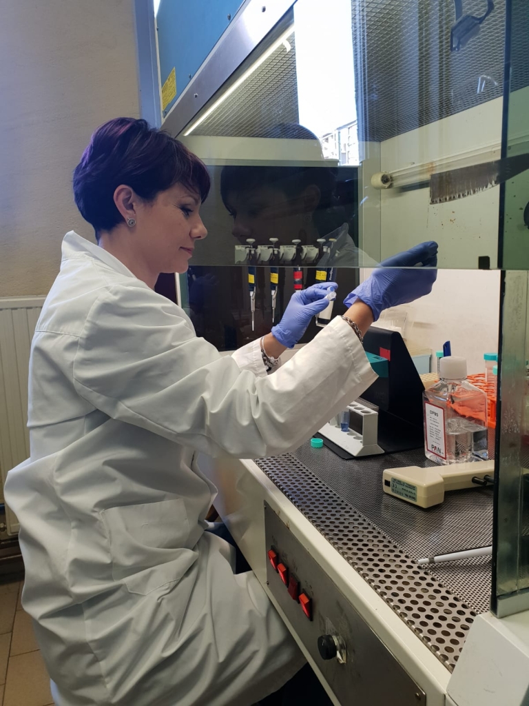 «La mia giornata in laboratorio solitamente inizia verso le 9,30. Dopo che ho svolto le mie mansioni da mamma, preparare le figlie e portarle a scuola, riesco ad affrontare il traffico di Roma e arrivare finalmente a lavoro. In genere intervallo momenti di lavoro alla scrivania dove mi siedo davanti al pc per rispondere alle mail, ordinare il materiale per il lavoro e leggere articoli scientifici utili alla mia ricerca, con momenti di lavoro al bancone».