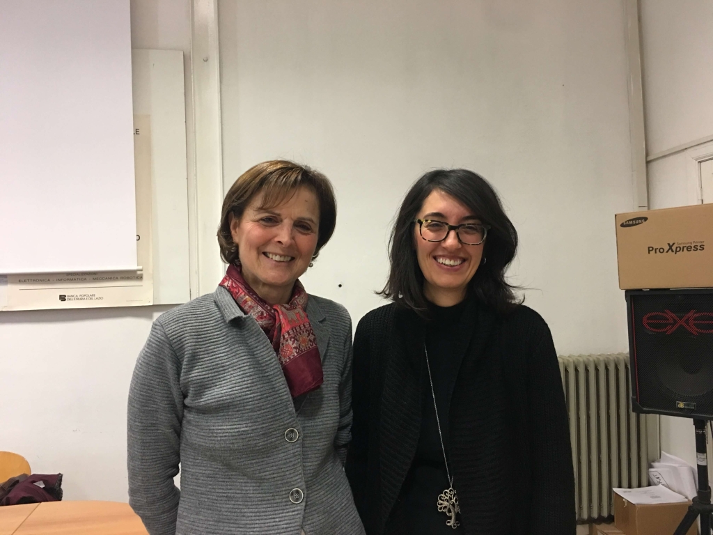 A parlare ai ragazzi è intervenuta Melissa Finali (nella foto, accanto alla professoressa Mirella Ristori), biologa nutrizionista e divulgatrice della Fondazione Umberto Veronesi, che ha spiegato: «Gli errori più frequenti si commettono con la colazione e le merende: la prima risulta spesso assente o carente, le seconde invece sono più frequentemente ipercaloriche. Per questo motivo è importante far comprendere ai ragazzi quali possono essere delle colazioni e delle merende adeguate, attraverso esempi concreti, in modo che possano condividere queste informazioni con la famiglia e responsabilizzarsi».