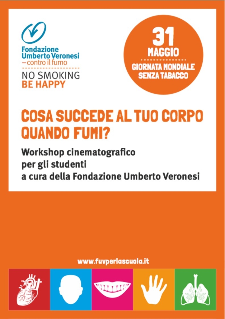 Continua l’impegno della Fondazione Umberto Veronesi contro il fumo di sigaretta, con il progetto No Smoking Be Happy. Tra le attività previste per quest'anno, ci sono nove workshop cinematografici organizzati in otto città italiane nel mese di maggio, in vista della Giornata Mondiale Senza Tabacco, fissata l'ultimo giorno del mese.