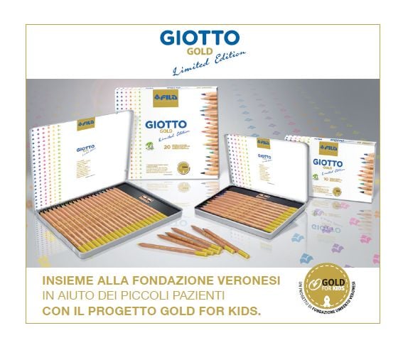 FILA - Fabbrica Italiana Lapis ed Affini, l’azienda italiana icona della creatività con i suoi prodotti per colorare, disegnare, modellare, scrivere e dipingere, continua a sostenere il progetto Gold for Kids di Fondazione Umberto Veronesi attraverso le due confezioni speciali di matite colorate firmate GIOTTO GOLD Limited Edition, in vendita nelle migliori cartolerie e librerie.