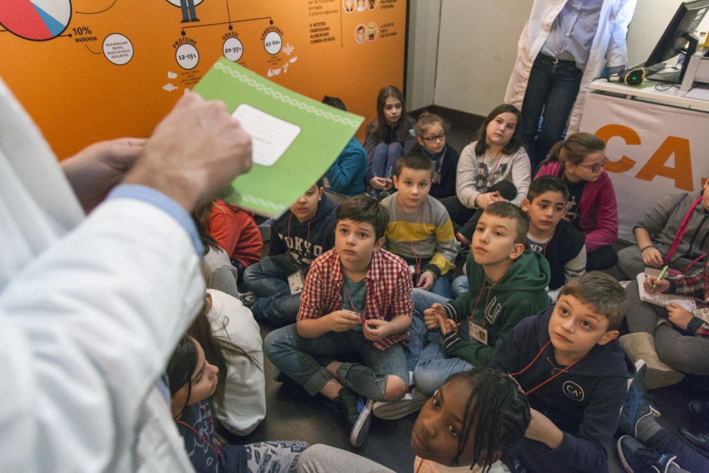 Bambini e ragazzi dagli 8 ai 18 anni, attraverso una visita guidata alla mostra, hanno la possibilità di imparare divertendosi come il cibo interagisce con il nostro DNA e come il nostro patrimonio genetico, d’altro canto, determina il modo in cui traiamo nutrimento dagli alimenti che mangiamo.