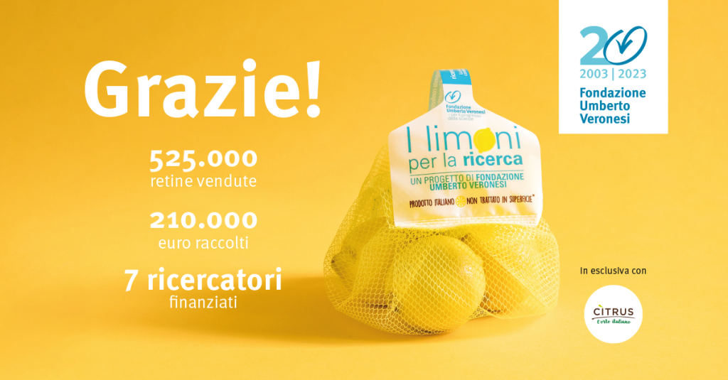 «Grazie alla grande sensibilità dei consumatori e delle sempre più numerose insegne che hanno sostenuto questa nuova edizione, potremo finanziare il lavoro di sette eccellenti ricercatori e ricercatrici. “I limoni per la ricerca®” è un progetto che vede come prezioso partner l’azienda italiana Citrus l’Orto Italiano, che con rinnovata dedizione durante questi anni ha creduto fortemente nell’importanza di sostenere la ricerca a beneficio di tutti noi» - afferma Monica Ramaioli, Direttore Generale di Fondazione Umberto Veronesi.