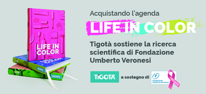 Per i mesi di dicembre e gennaio, negli oltre 600 punti vendita diffusi su gran parte del territorio nazionale, sarà in vendita l’Agenda 2021 «Life in color». Per ogni agenda venduta al prezzo di 3 euro, Tigotà donerà 1 euro a Fondazione. «Guardiamo da sempre con interesse a chi si dedica quotidianamente agli altri: l’anno scorso abbiamo valorizzato un percorso dedicato all’umanizzazione delle cure, adesso cercheremo di dare il nostro contributo alla ricerca», afferma Tiziano Gottardo, presidente del gruppo.
