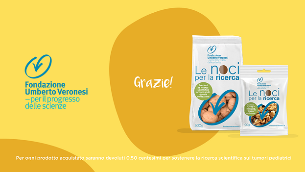 Per tutto il mese di febbraio, infatti, per ogni confezione di noci Life ha devoluto 0,50 a Fondazione Veronesi a sostegno del lavoro di medici e ricercatori impegnati nell'ambito dell'oncologia pediatrica.