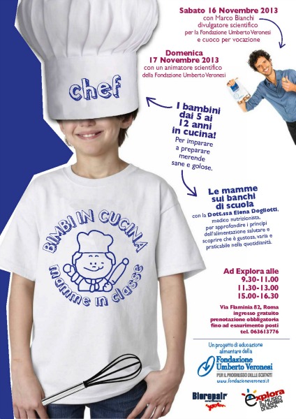 Il 16 novembre i bambini saranno guidati da Marco Bianchi, divulgatore scientifico della Fondazione Veronesi e chef per vocazione, mentre il 17 sarà presente un animatore scientifico della Fondazione Veronesi.