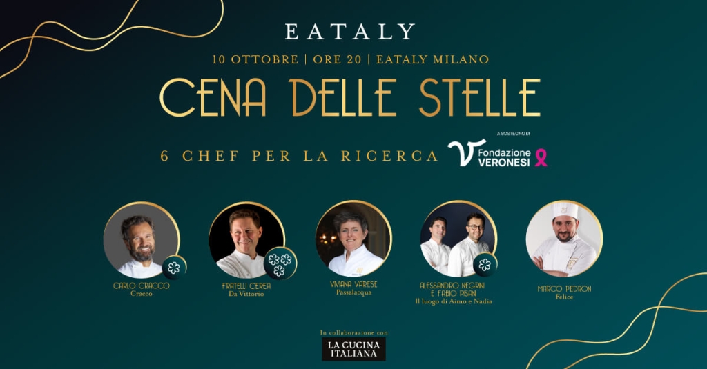 Eataly Milano Smeraldo ospiterà una prestigiosa cena stellata di beneficenza a sostegno della ricerca scientifica. L’appuntamento con la Cena delle stelle è previsto per giovedì 10 ottobre alle ore 20 negli spazi del nuovo ristorante Eataly Food&Pizza Theatre, situato al secondo piano.
