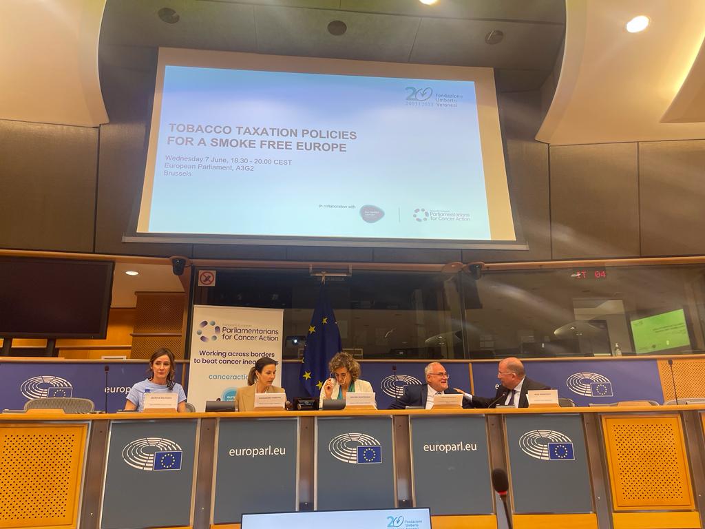 Mercoledì 7 giugno, presso l’Aula A3G2 del Parlamento Europeo a Bruxelles, si è tenuto l'evento “Tobacco taxation policies for a smoke-free Europe”, organizzato da Fondazione Umberto Veronesi in collaborazione con ECO European Cancer Organisation, con l’obiettivo di ridurre l’impatto umano, sanitario ed economico del tabacco. Un confronto con esperti del mondo scientifico e le Istituzioni sui temi della prevenzione, del fumo e delle malattie correlate, sulle politiche sanitarie più efficaci e sostenibili per contenere il danno arrecato dal tabacco, in tutte le sue forme.