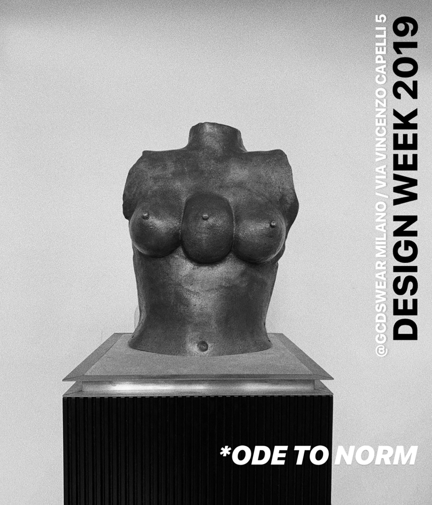 L’esposizione rappresenta un grido d’allarme per le nuove generazioni ed evidenzia la difficoltà nell’accettare le varie forme di diversità, considerando che il futuro riserverà sempre nuovi canoni, come umani geneticamente modificati con tre seni, ciclopi e mutanti. Un’ode alla diversità che GCDS simbolizza attraverso l’esposizione di un busto di bronzo con tre seni ideato da Giuliano in persona, perché come ha affermato dopo lo show della collezione SS19 : «i tre seni vanno intesi come simbolo di una dichiarazione politica in un momento storico in cui sia arte che cultura hanno bisogno di essere alimentate più che mai».