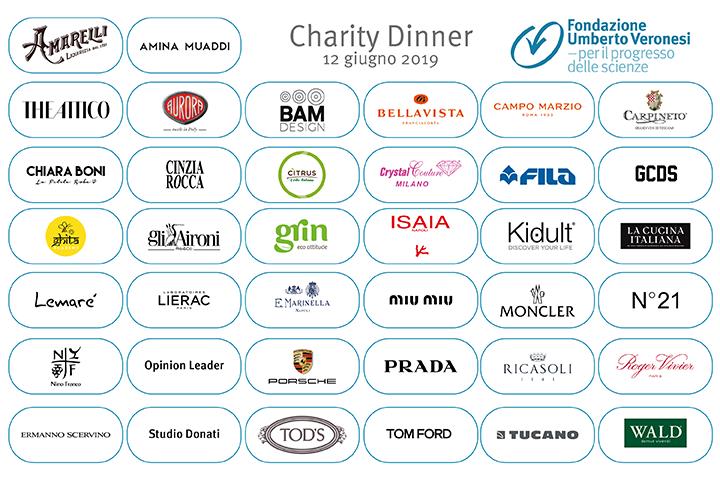 Senza la loro sensibilità, il sostegno alla ricerca sui tumori pediatrici sarebbe stato inferiore. Stiamo parlando delle 38 aziende (tutte indicate nell'immagine) che, in occasione dell'annuale cena di raccolta fondi di Milano, hanno donato diversi lotti dei loro prodotti. L'asta che ne è scaturita ha già permesso di raccogliere una cifra sostanziosa, che Fondazione Umberto Veronesi destinerà interamente al progetto Gold for Kids.