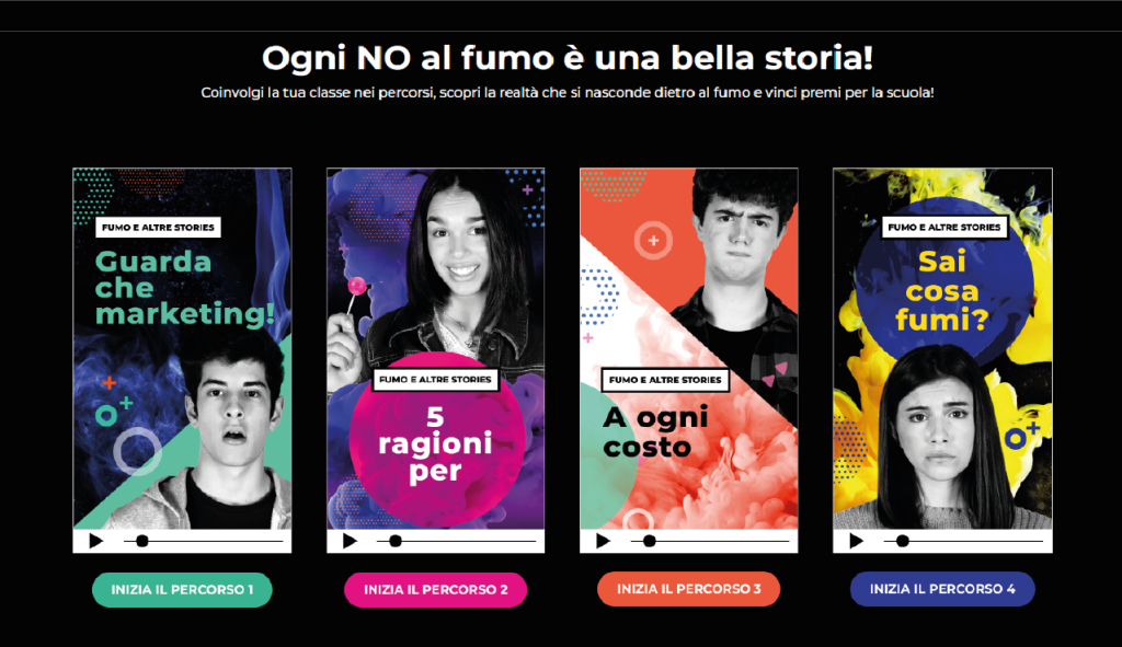 Annunciati i vincitori del contest "Fumo e altre stories 2024", il progetto di Fondazione per sensibilizzare i giovani sui rischi del fumo come sigarette tradizionali, elettroniche, tabacco riscaldato e altri prodotti "light". Pensato con un approccio narrativo mutuato dal mondo dei social network, seguendo il format delle stories social i ragazzi sono stati invitati a diventare a loro volta creatori di nuove stories. In particolare il contest ha previsto la creazione di frasi contro il fumo da apporre sui pacchetti di sigarette e la creazione di video in cui spiegare perché non bisognerebbe avvicinarsi al fumo.
