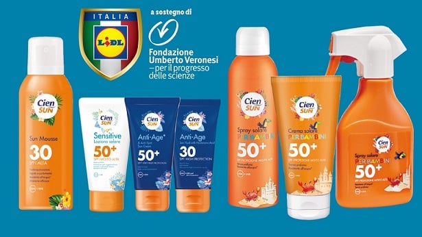 Per questo, a partire da giovedì 20 maggio in tutti gli oltre 680 punti vendita di Lidl Italia, per ogni solare Cien Sun acquistato, scelto tra una selezione di prodotti ad alta protezione, l’azienda donerà 50 centesimi a favore di Fondazione Umberto Veronesi per contribuire a sostenere il lavoro di un ricercatore impegnato nello studio e nella cura dei tumori della pelle. Per incentivare la protezione costante durante l’esposizione solare e sfatare il mito che le creme ad alto fattore di protezione non fanno abbronzare, l’attività riguarderà la vendita proprio dei solari Cien Sun con fattori di protezione 30, 50 e 50+, compresi quelli specifici per i bambini.