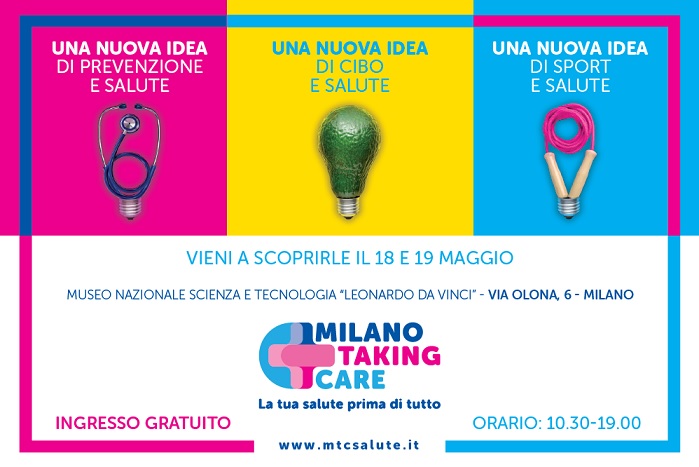 Sabato 18 e domenica 19 maggio 2019 lo spazio espositivo delle Cavallerizze del Museo Nazionale della Scienza e della Tecnologia Leonardo da Vinci di Milano si trasformerà in un «villaggio della salute», per permettere a tutti i visitatori di scoprire le novità per la cura e il benessere personale. Questo è l'obiettivo di «Milano Taking Care», un evento gratuito che permetterà di interagire e confrontarsi con volti noti e professionisti della salute. Tra questi, ci saranno pure Elena Dogliotti (biologa nutrizionista e supervisore scientifico di Fondazione Umberto Veronesi) e Federica Mazzoleni (urologa e divulgatrice scientifica di Fondazione Umberto Veronesi).