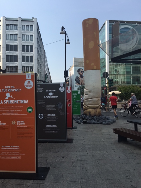 Si avvicina la Giornata Mondiale senza Tabacco, prevista per il 31 maggio, e la Fondazione Umberto Veronesi torna in piazza con il sigarettone della campagna «Spegni l'Ultima» e la mostra sui danni del fumo al corpo umano («Come sta il tuo corpo quando fumi?»), che sarà visitabile assieme a un divulgatore scientifico della Fondazione.