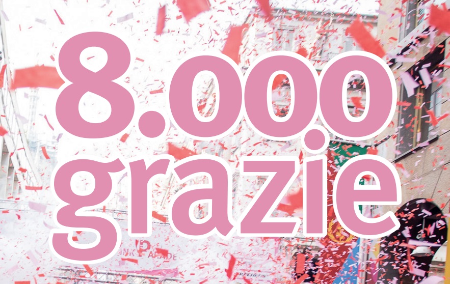 La «mobilitazione rosa» voluta da PittaRosso a favore della ricerca scientifica di Fondazione Umberto Veronesi contro i tumori femminili ha portato anche quest'anno a un risultato straordinario. Oltre 500.000 euro raccolti per sostenere lo studio dei tumori che colpiscono le donne e più di 8.000 persone che hanno accolto l'invito a partecipare a una grande staffetta virtuale, da sud a nord, in ogni Regione italiana, per testimoniare l'amore per la ricerca scientifica e il bisogno di sensibilizzare le donne sulla prevenzione dei tumori.