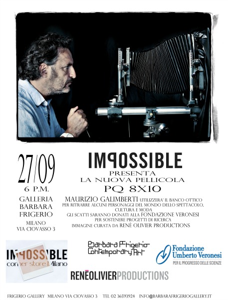 Giovedì 27 settembre alle ore 18 presso l'Impossible Corner di Milano verrà presentata al pubblico la nuova pellicola Impossible, la PQ 8x10, una pellicola istantanea di grandi dimensioni, 20x25 cm circa, in bianco e nero, che farà rivivere o scoprire al pubblico il fascino di questo leggendario formato, utilizzato dal banco ottico.