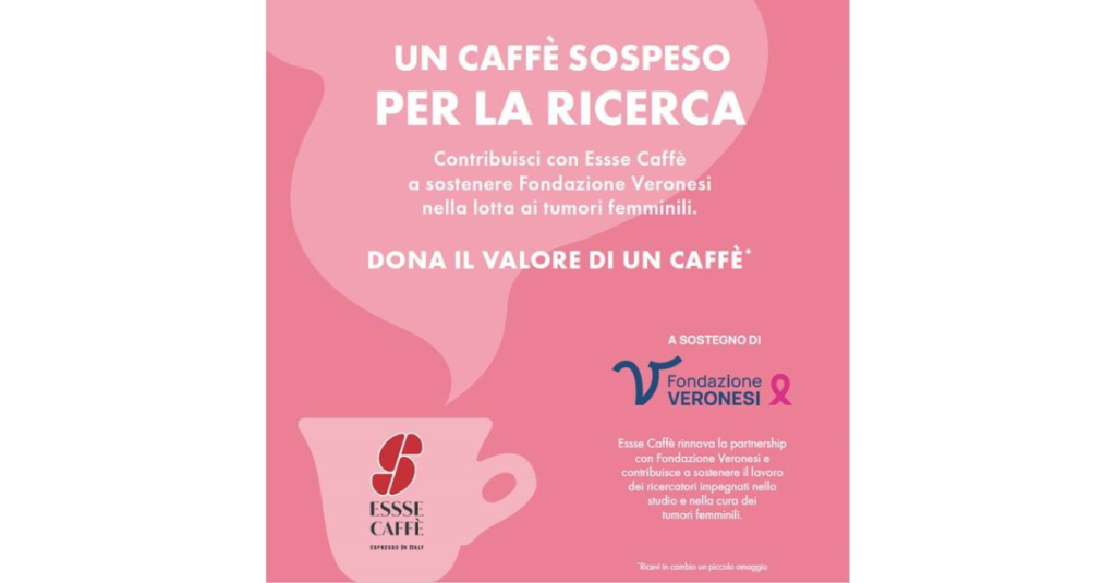 Ritorna anche quest’anno Un caffè sospeso per la ricerca, l’iniziativa lanciata da Essse Caffè – storica torrefazione bolognese – per sostenere la ricerca sui tumori tipicamente femminili promossa da Fondazione Veronesi.