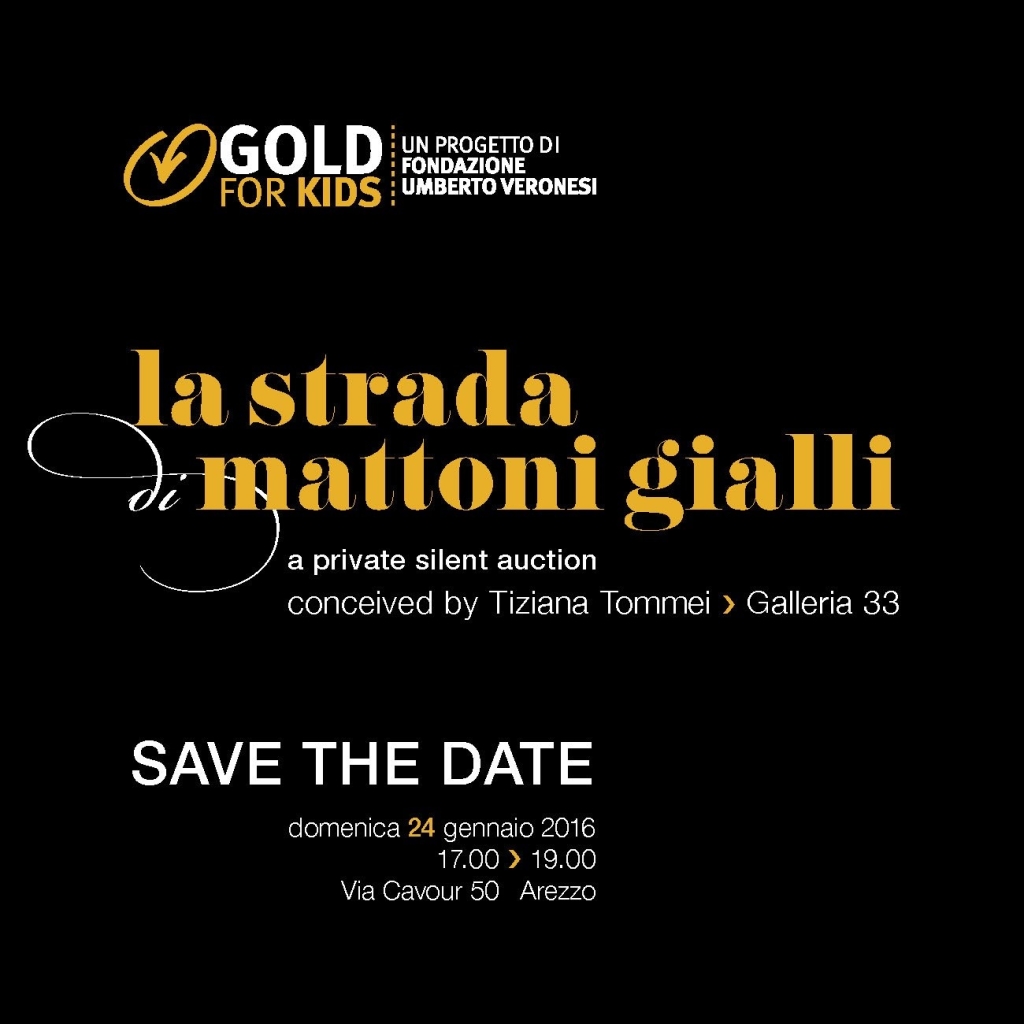 La delegazione aretina della Fondazione Umberto Veronesi comincia il 2016 con una nuova iniziativa a favore di Gold for Kids: "La strada di mattoni gialli", un'asta silenziosa a sostegno del progetto dedicato ai tumori pediatrici e dell'adolescenza.