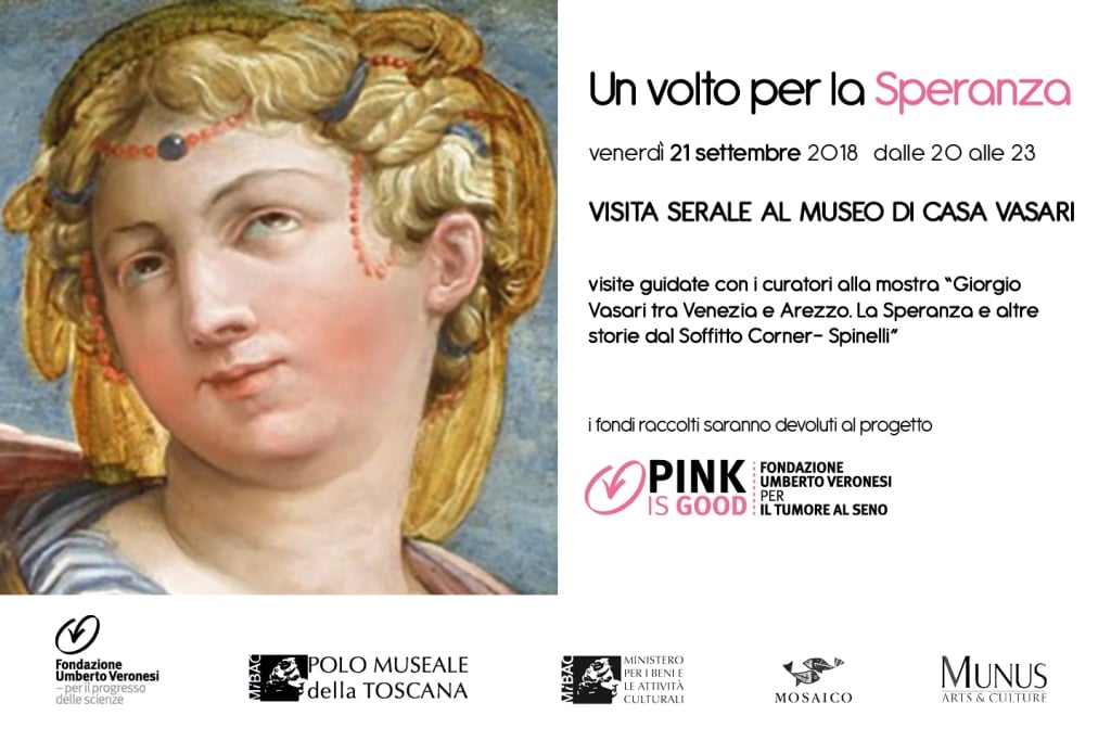 I fondi raccolti mediante le quote di partecipazione alla serata (12.50 euro a persona, di cui 2,50 euro per il biglietto di ingresso e 10 euro di donazione per la ricerca scientifica) saranno devoluti a Pink is Good, Progetto di Fondazione Umberto Veronesi volto a sostenere la ricerca contro il tumore al seno e promuovere la prevenzione. Grazie a Pink is Good, a partire dal 2013, vengono finanziate borse e progetti di ricerca per medici e scienziati che hanno deciso di dedicare la loro vita alla studio ed alla cura del tumore al seno. «Sono molto grata al dottor Stefano Casciu, Direttore del Polo Museale della Toscana, all’architetto Rossella Sileno, Direttore del Museo di Casa Vasari ed al Gruppo Mosaico per la disponibilità e sensibilità dimostrata verso Fondazione Umberto Veronesi e per l’impegno profuso nella realizzazione di questa serata», afferma Laura Carlini, Responsabile della Delegazione di Arezzo.