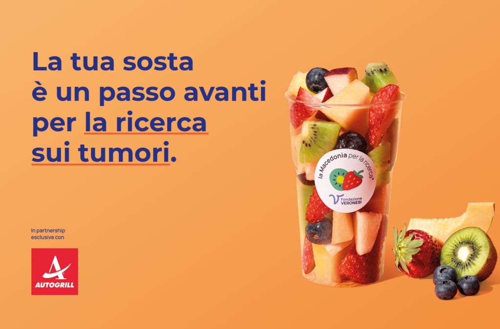 La Macedonia per la ricerca® è un’iniziativa pensata per sensibilizzare le persone sull’importanza di un’alimentazione sana, varia ed equilibrata anche in viaggio. Grazie a questo progetto, realizzato in partnership esclusiva con Autogrill, ogni anno dal 2021 è stato possibile sostenere il lavoro di una ricercatrice impegnata nel campo della prevenzione e degli stili di vita.